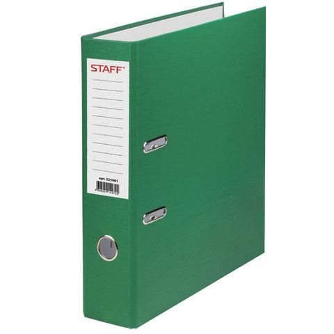 Папка-регистратор STAFF "Manager" с покрытием из ПВХ, 70 мм, без уголка, зеленая, 225981