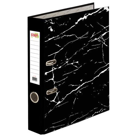 Папка-регистратор STAFF "Profit" с мраморным покрытием, 75 мм, черная, СЪЕМНЫЙ МЕХАНИЗМ, 272007