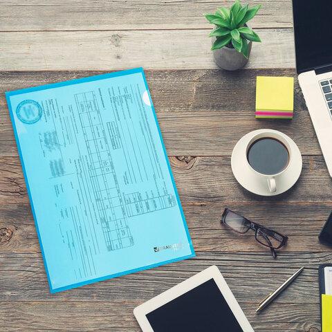 Папка-уголок плотная BRAUBERG SUPER, 0,18 мм, синяя, 270479