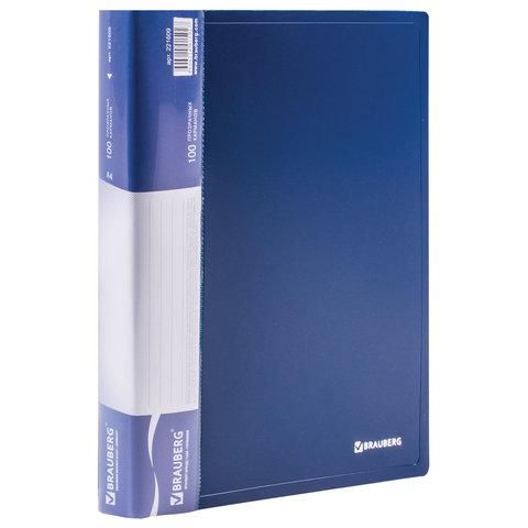 Папка BRAUBERG "Стандарт" солидного синего цвета отлично подходит для хранения документов, составления каталогов, меню и т.п.На корешке имеется карман для маркировки содержимого. Папка изготовлена из качественного пластика толщиной 0,9 мм с антибликовой фактурой, а ширина корешка составляет 35 мм. Содержит 100 вкладышей, позволяющих хранить документы формата А4 и обеспечивающих их надежную защиту от попадания влаги, пыли и прочих повреждений. Поставляется в индивидуальной упаковке.