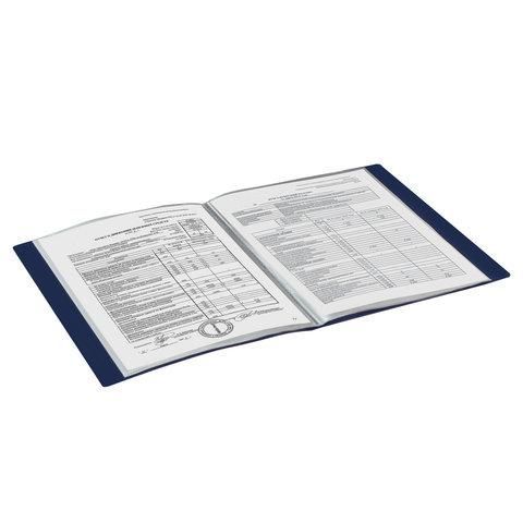 С помощью папки STAFF солидного синего цвета документы и ценные бумаги будут защищены и содержаться в порядке.Для маркировки содержимого на корешок наклеена этикетка. Папка изготовлена из пластика толщиной 0,7 мм с антибликовой фактурой, а ширина корешка составляет 35 мм. Содержит 100 вкладышей, позволяющих хранить документы формата А4 и обеспечивающих их надежную защиту от попадания влаги, пыли и прочих повреждений.