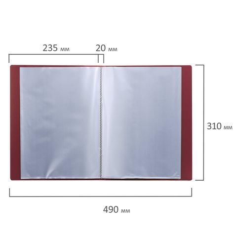 Папка BRAUBERG "Стандарт" яркого красного цвета отлично подходит для хранения документов, составления каталогов, меню и т.п.На корешке имеется карман для маркировки содержимого. Папка изготовлена из качественного пластика толщиной 0,6 мм с антибликовой фактурой, а ширина корешка составляет 20 мм. Содержит 30 вкладышей, позволяющих хранить документы формата А4 и обеспечивающих их надежную защиту от попадания влаги, пыли и прочих повреждений. Поставляется в индивидуальной упаковке.
