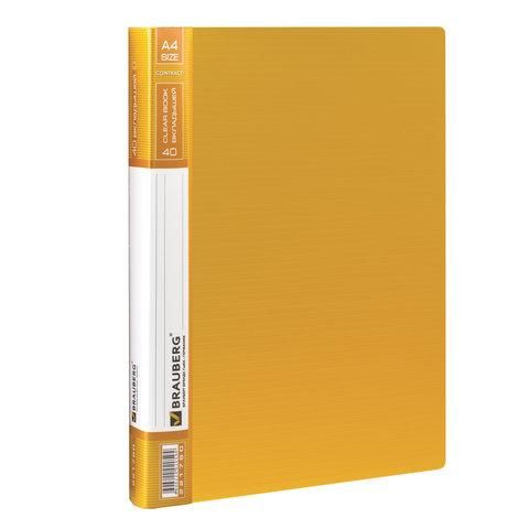Папка 40 вкладышей BRAUBERG "Contract", желтая, вкладыши-антиблик, 0,7 мм, бизнес-класс, 221780