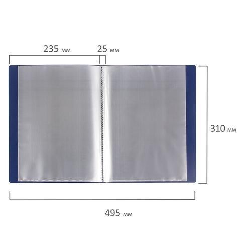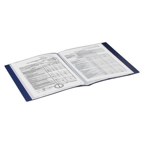 Папка BRAUBERG "Стандарт" солидного синего цвета отлично подходит для хранения документов, составления каталогов, меню и т.п.На корешке имеется карман для маркировки содержимого. Папка изготовлена из качественного пластика толщиной 0,7 мм с антибликовой фактурой, а ширина корешка составляет 25 мм. Содержит 40 вкладышей, позволяющих хранить документы формата А4 и обеспечивающих их надежную защиту от попадания влаги, пыли и прочих повреждений. Поставляется в индивидуальной упаковке.