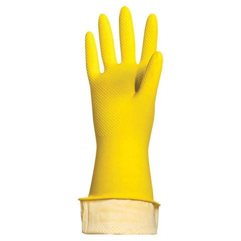 Перчатки хозяйственные латексные ЛЮБАША ЭКОНОМ, МНОГОРАЗОВЫЕ, хлопчатобумажное напыление, размер XL (очень большой), 603786