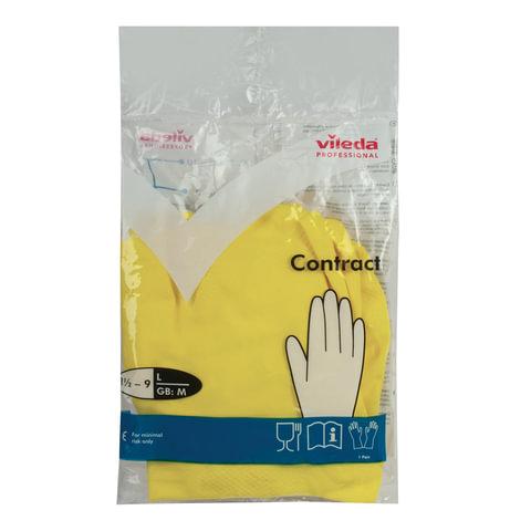 Перчатки МНОГОРАЗОВЫЕ резиновые VILEDA "Контракт", хлопчатобумажное напыление, размер L (большой), желтые, вес 60 г, 174325