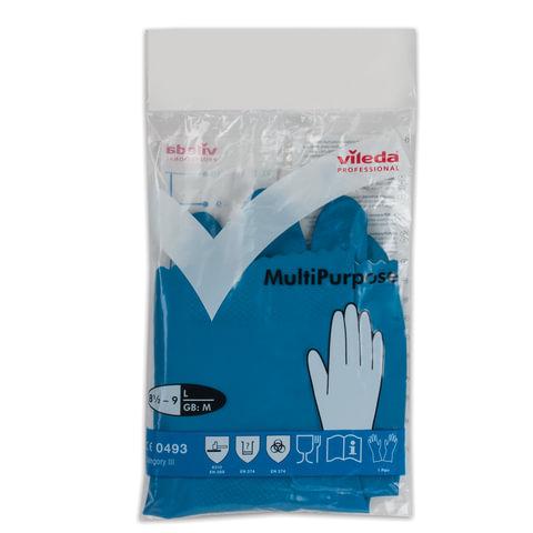Перчатки МНОГОРАЗОВЫЕ резиновые VILEDA многоцелевые, хлопчатобумажное напыление, ПРОЧНЫЕ, размер L (большой), синий, вес 66 г, 174355