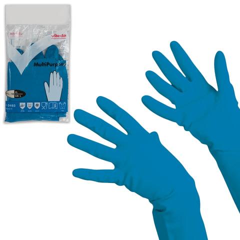 Перчатки МНОГОРАЗОВЫЕ резиновые VILEDA многоцелевые, хлопчатобумажное напыление, ПРОЧНЫЕ, размер XL (очень большой), синий, вес 72 г, 174357