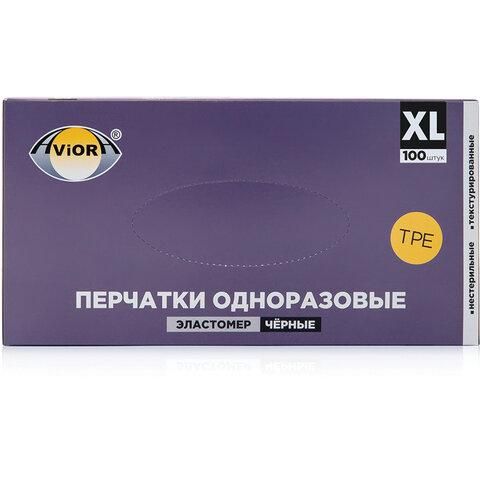 Перчатки TPE термопластэластомер, КОМПЛЕКТ 50 пар (100 шт.) неопудренные, размер ХL ( очень большой), черные, AVIORA, 402-885