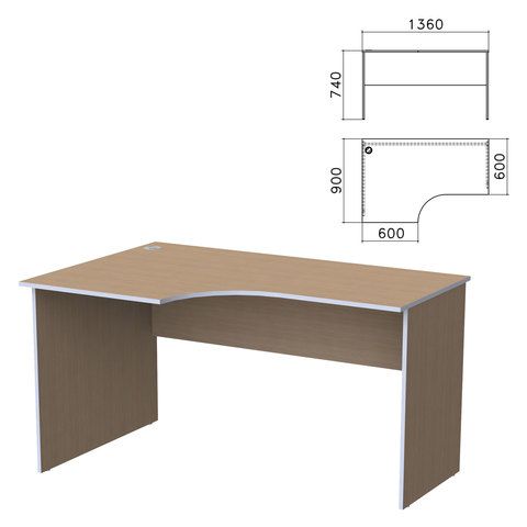 Стол письменный эргономичный "Бюджет", 1360х900х740 мм, левый, орех онтарио, 402662-160