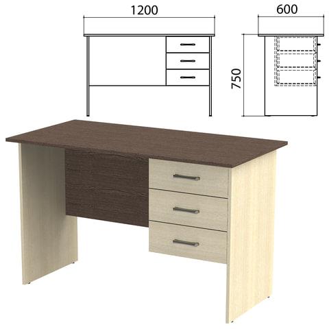 Стол письменный "Канц", 1200х600х750 мм, тумба 3 ящика, цвет венге/дуб молочный (КОМПЛЕКТ)
