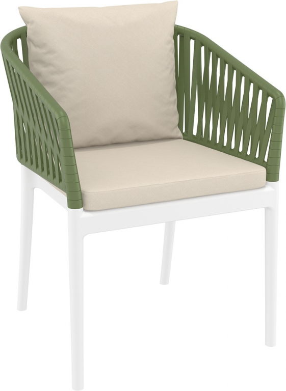 Кресло пластиковое с подушками Portofino белый, оливковый, бежевый