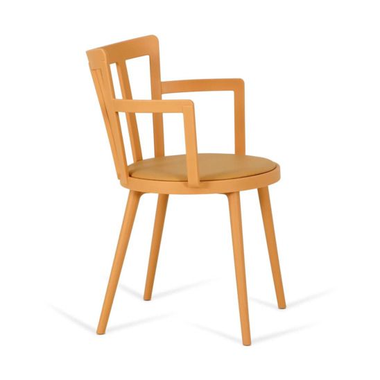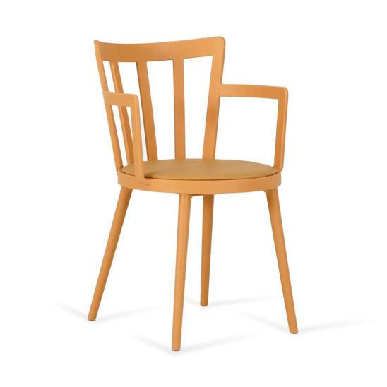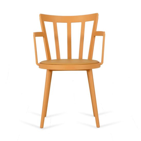 Обеденный стол в скандинавском стиле. Тонкая столешница выполнена из МДФ светло-коричневого цвета. Покрытие из меламина имитирует древесный шпон. Меламин обладает особой прочностью, не боится моющих средств и воды, не выгорает, устойчив к механическим воздействиям.