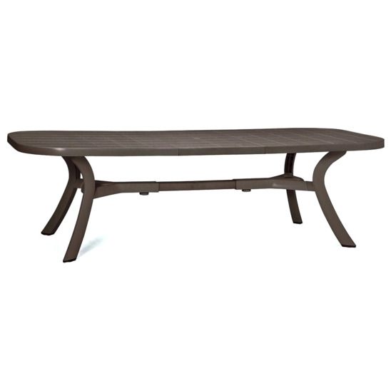 Стол из полипропилена со съемной вставной столешницей, за счет которой длина стола может варьироваться от 1920 до 2500 мм. Стол выполнен в простом цвете и строгом лаконичном стиле, предназначен для использования на улице.