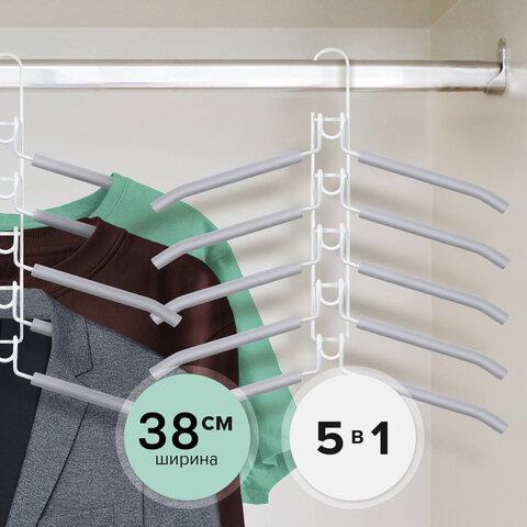Вешалка-плечики трансформер, 5 плечиков, металл с покрытием, белые, BRABIX ULTRA, 607475