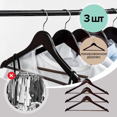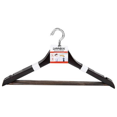 Вешалки-плечики с антискользящими накладками, КОМПЛЕКТ 3 штуки, размер 48-50, дерево, BRABIX, 607476