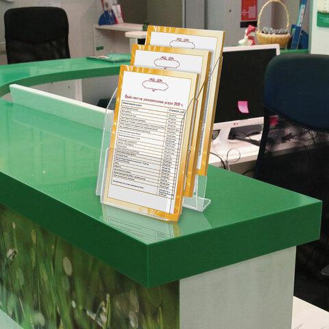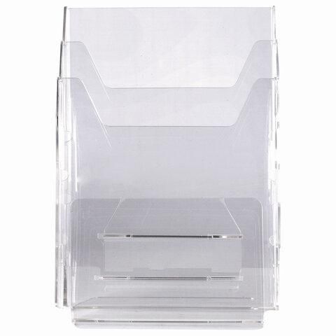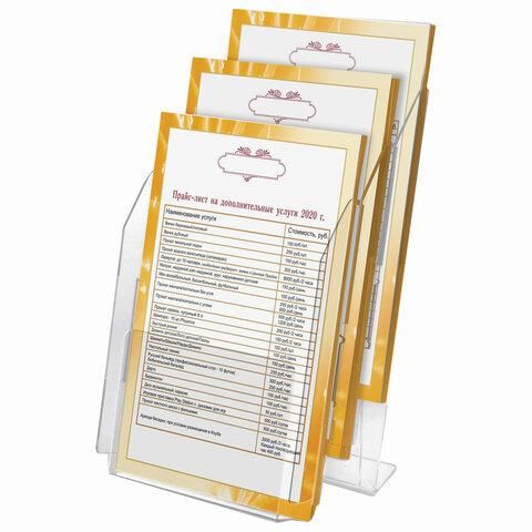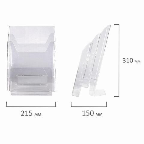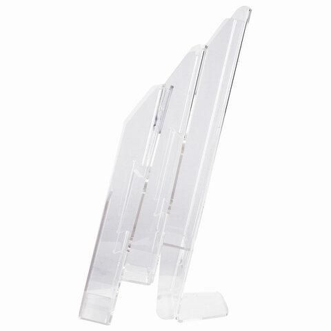 Подставка настольная для рекламных материалов (250х215х32 мм) А4, 3 отделения, смещение, STAFF, 291174