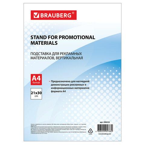 Подставка настольная для рекламных материалов ВЕРТИКАЛЬНАЯ (210х297 мм), А4, односторонняя, BRAUBERG, 290418