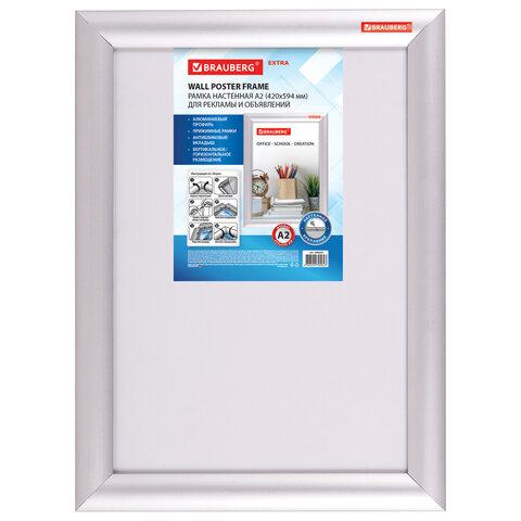 Рамка настенная с "клик"-профилем А2 (420х594 мм), алюминиевый профиль, BRAUBERG Extra, 238222