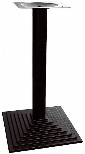 Подстолье металлическое. Труба и основание-черное порошковое покрытие. Основание пирамидальное ступеньками. Рекомендуемый размер столешницы: D-80, 70х70.
