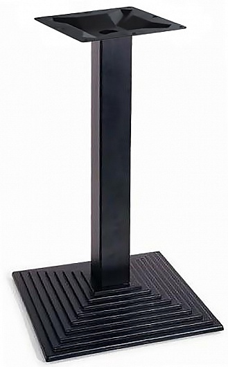 Подстолье металлическое. Труба и основание-черное порошковое покрытие. Основание пирамидальное ступеньками. Рекомендуемый размер столешницы: D-80, 80х80.