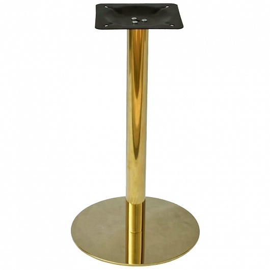 Подстолье хромированное золотого цвета. Диаметр основания: 45 см, диаметр трубы: 7,6 см, размер верхней площадки: 25х25 см. Рекомендуемый размер столешницы: D-80, 80х80