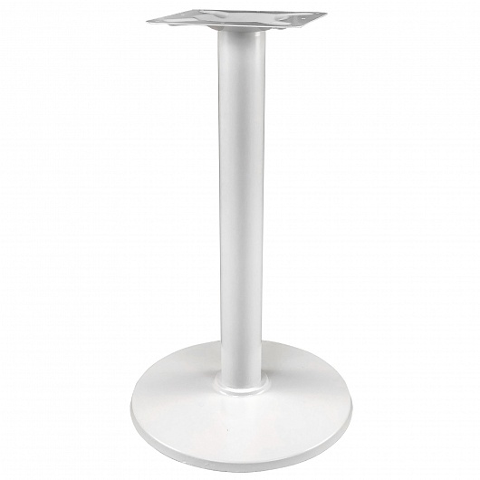 Подстолье металлическое. Труба и основание-белое порошковое покрытие. Основание конусообразное. Рекомендуемый размер столешницы: D-70, 70х70.