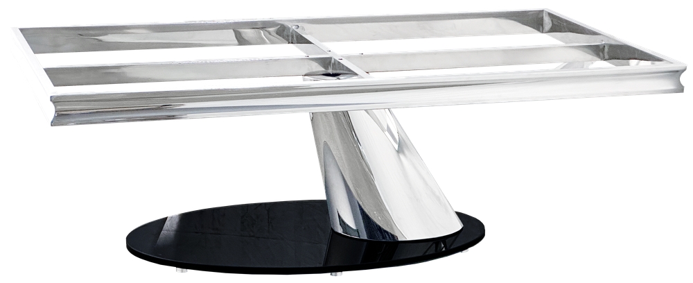 Журнальное подстолье из полированной нержавеющей (зеркальное) стали. В основании закаленное стекло толщиной 15 мм. Рама под столешницу размером 126х66.