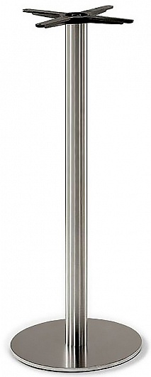 Подстолье из полированной нержавеющей стали (матовое). Размер крестовины: D45 см, диаметр трубы 7,6 см. Рекомендуемый размер столешницы: D-70, 70х70