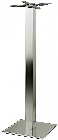 Подстолье из нержавеющей стали (матовое). Размер крестовины: D45 см, труб 8*8 см. Рекомендуемый размер столешницы: D-80, 80х80