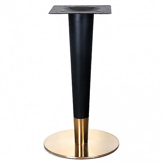 Подстолье хромированное. Основание золотого цвета. Труба черный металл. Диаметр основания: 45 см, размер верхней площадки: 25х25 см. Рекомендуемый размер столешницы: D-80, 80х80