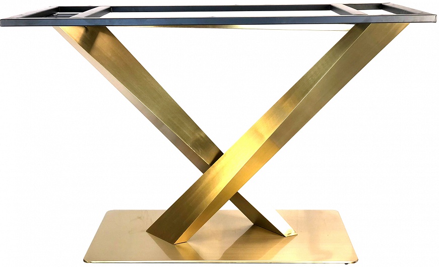Подстолье из полированной нерживеющей стали (матовое) золотого цвета. Размер верхней части: 112,5х50 см. Рекомендуемый размер столешницы: 140х80