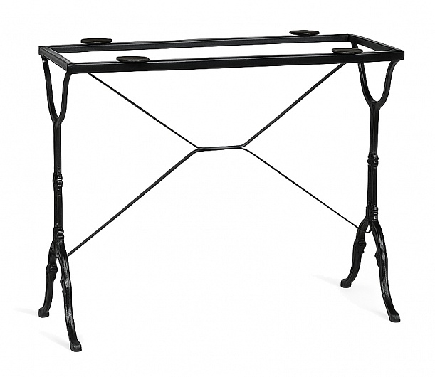 Подстолье из сплава чугуна и стальных элементов. Черного цвета. Рекомендуемый размер столешницы - 110х70.