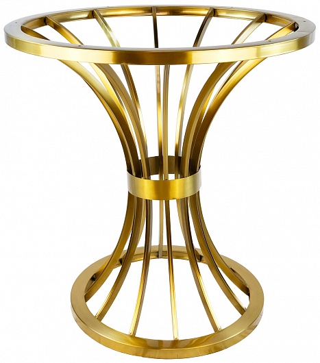 Подстолье из полированной нержавеющей стали (матовое нитрит титана) золотого цвета. Диаметр верхней части: 70 см, нижней части: 50 см. Рекомендуемый размер столешницы: D-80.