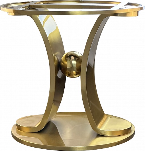 Подстолье из полированной нерживеющей стали (полированное) золотого цвета (нитрит титана). Лаковое покрытие. Диаметр верхней части: 80 см. Рекомендуемый размер столешницы: Ø160.