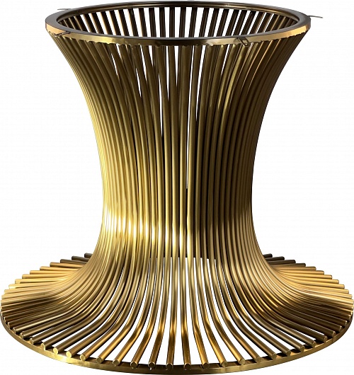 Подстолье из полированной нерживеющей стали, золотого цвета (нитрит титана). Лаковое покрытие. Диаметр верхней части: 65 см, нижней части: 90 см. Рекомендуемый размер столешницы: Ø220.