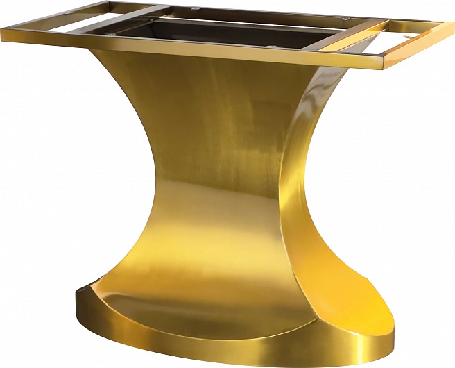 Подстолье из полированной нерживеющей стали (полированное) золотого цвета (нитрит титана). Лаковое покрытие. Размер верхней части: 90х50 см. Рекомендуемый размер столешницы: 160x90, Ø120.