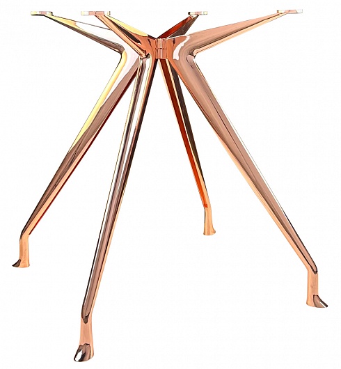 Подстолье из алюминия. Цвет - розовое золото. Диаметр верхней части: 74 см, нижней части: 88 см. Рекомендуемый размер столешницы: D-120.