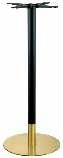 Подстолье. Нижняя часть из полированной нержавеющей стали (матовое) золотого цвета. Верхняя часть из стали покрытой черным порошком. Рекомендуемый размер столешницы: Ø70