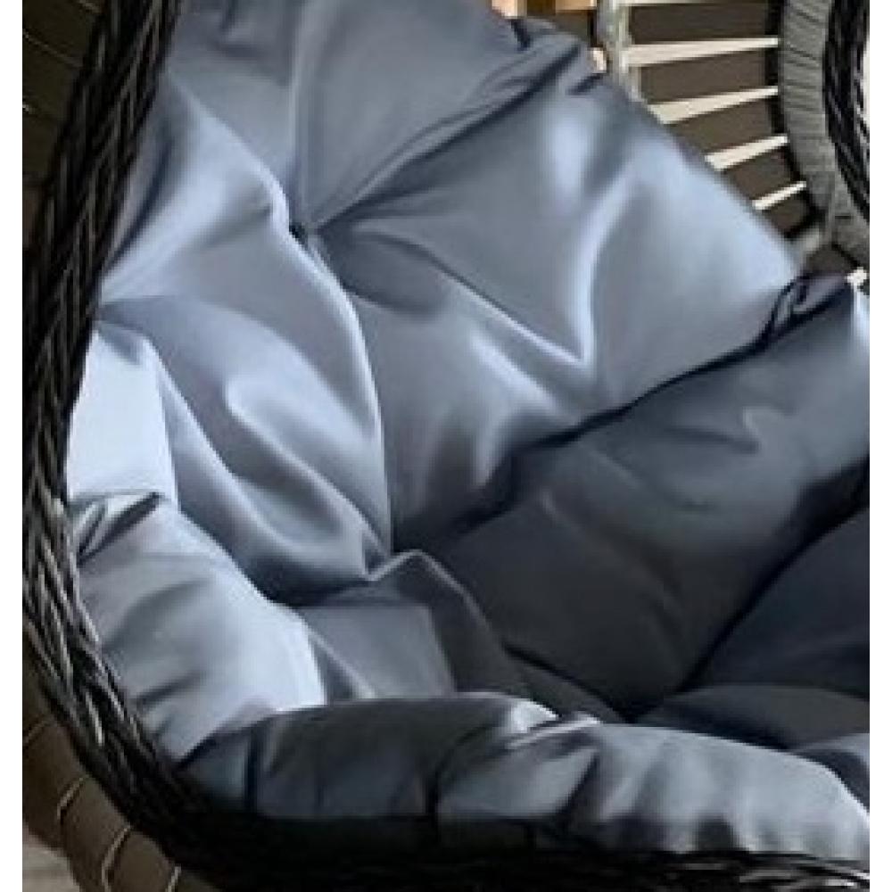 Материал плетения на корзине: широкий искусственный ротанг серого цвета с имитацией под натуральную кожу. Подушка однотонная серая. Ткань с водоотталкивающей пропиткой.