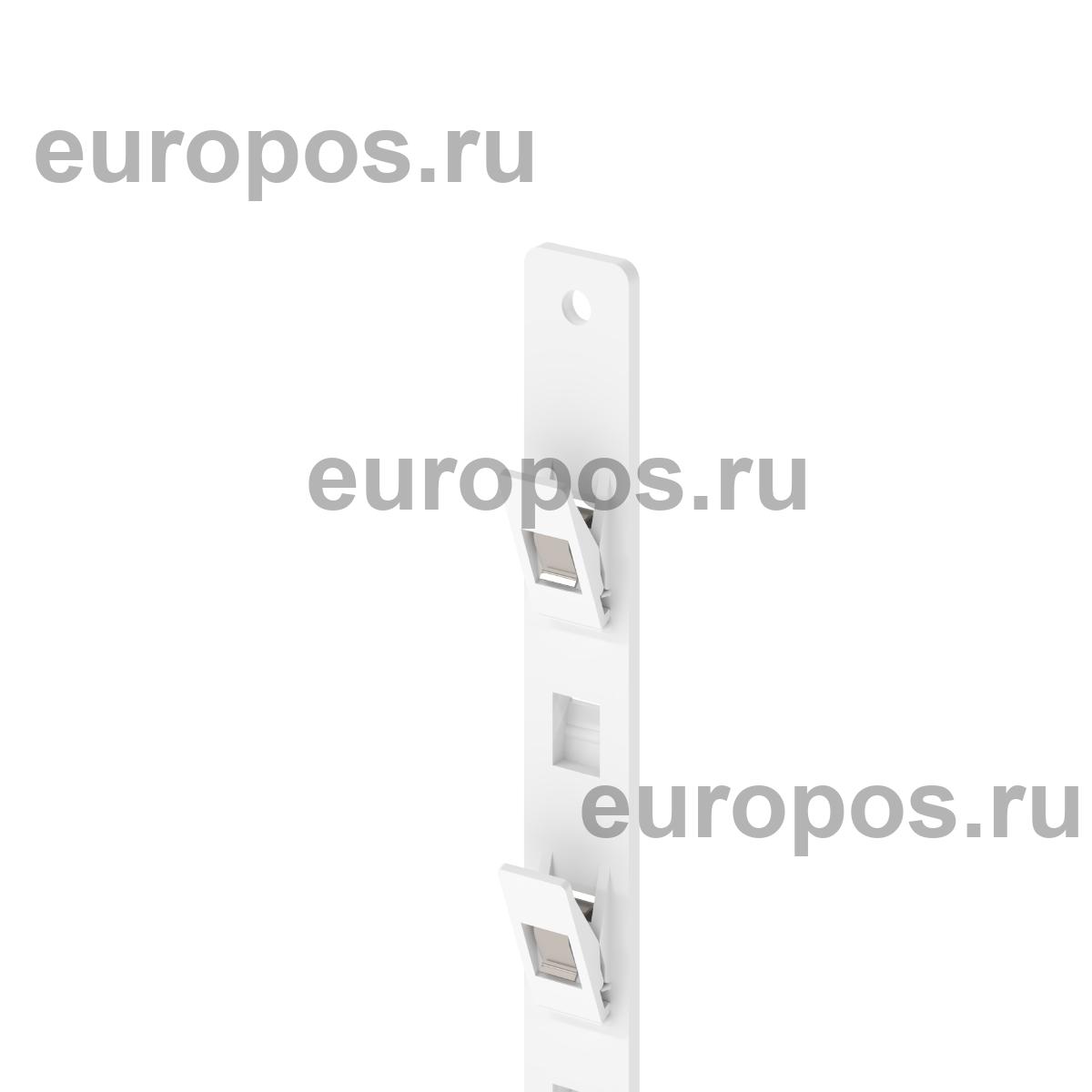 6 пластиковых прищепок-фиксаторов расположенных с шагом 63 мм обеспечивают надежное и удобное размещение товаров на ленте. В верхней части ленты предусмотрено отверстие для крепления к топперу или с использованием специального металлического крючка для страйп-лент или хомута.