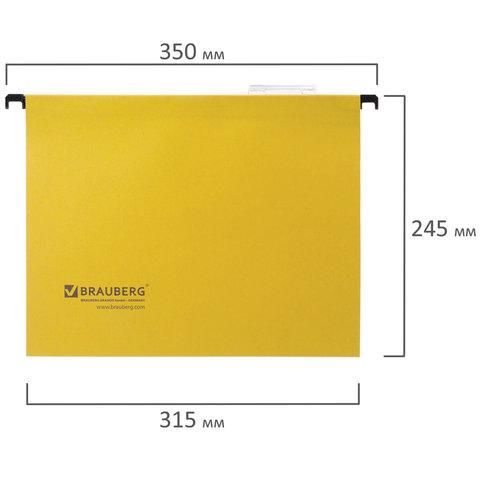 Подвесные папки А4 (350х245 мм), до 80 листов, КОМПЛЕКТ 10 шт., желтые, картон, BRAUBERG (Италия), 231790
