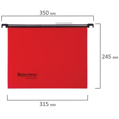 Подвесные папки А4 (350х245 мм), до 80 листов, КОМПЛЕКТ 5 шт., пластик, красные, BRAUBERG (Италия), 231800