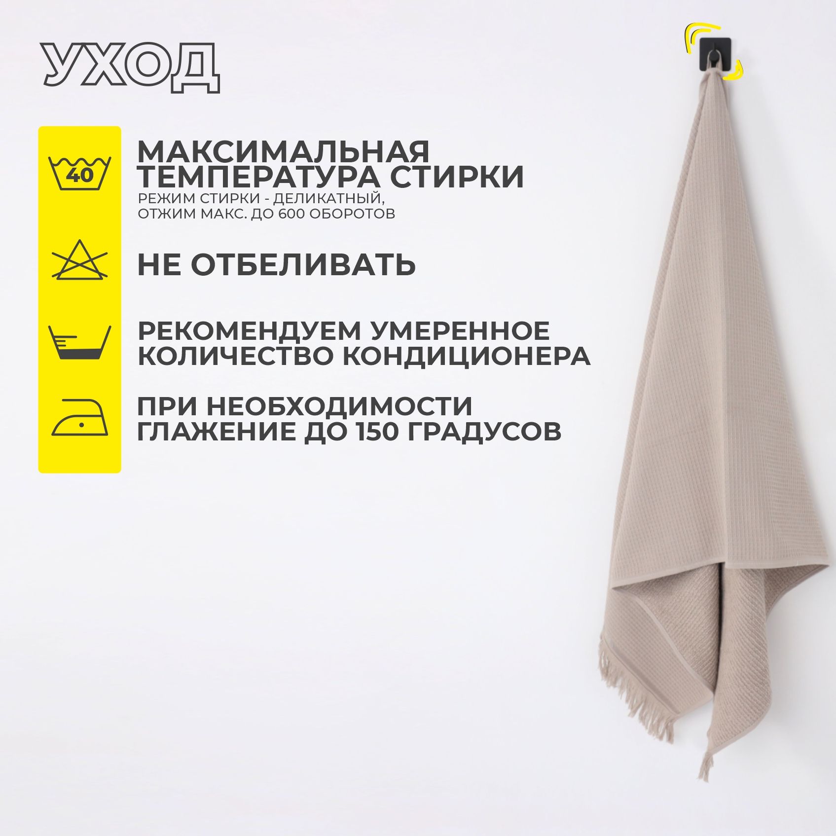 Наименование: Полотенце вафельное, 50*90см, бежевый