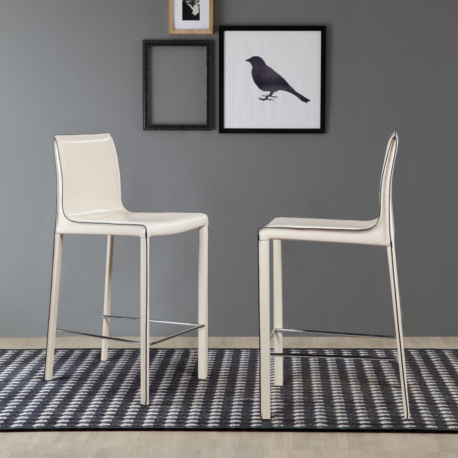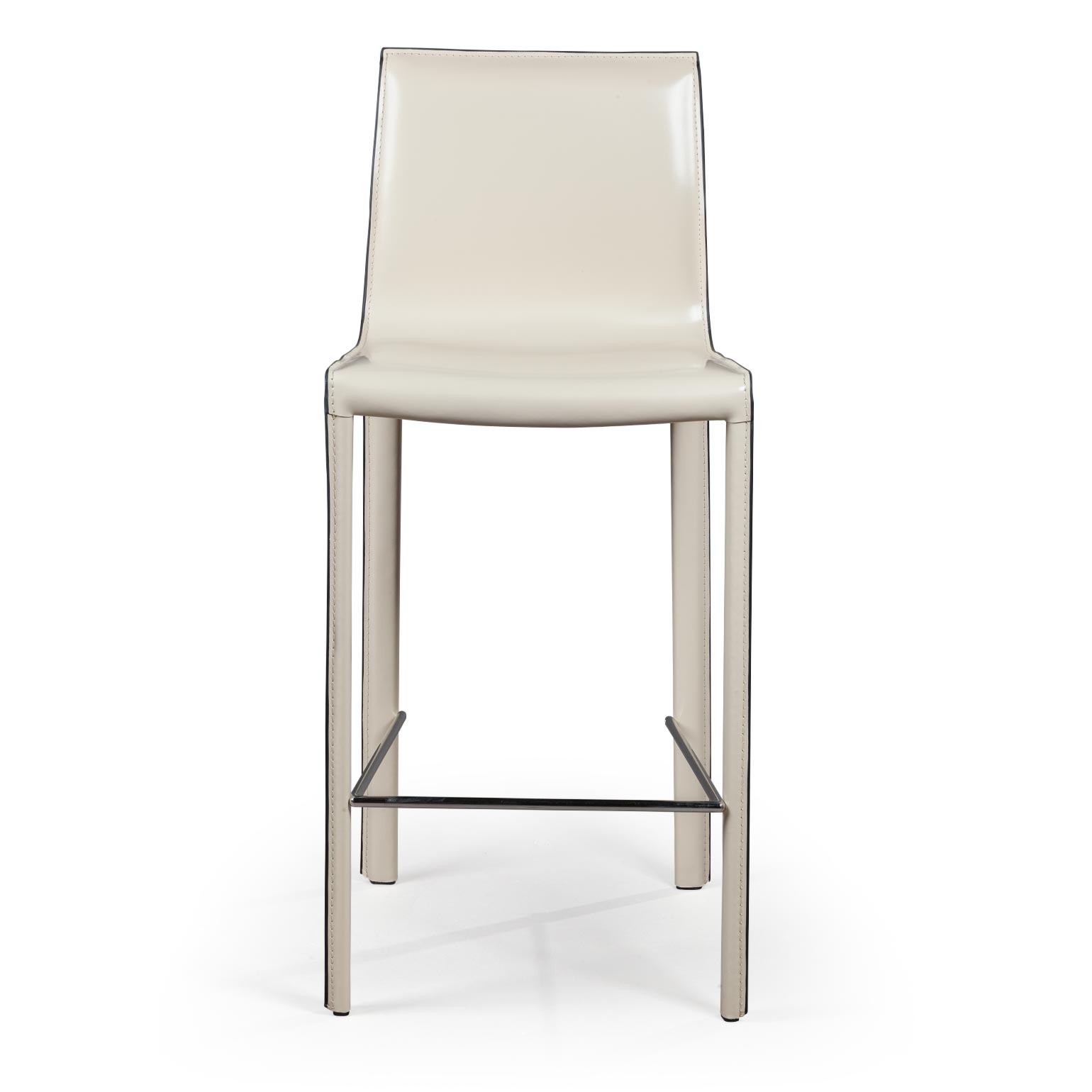 Крепкие металлические ножки скрыты под натуральной кожей такого же цвета, как и сам стул, благодаря этому создается лаконичный образ единого целого. На ножках предусмотрены хромированная подставка для ног и специальные пластиковые накладки, которые придают полубарному стулу дополнительную устойчивость и защищают полот царапин.