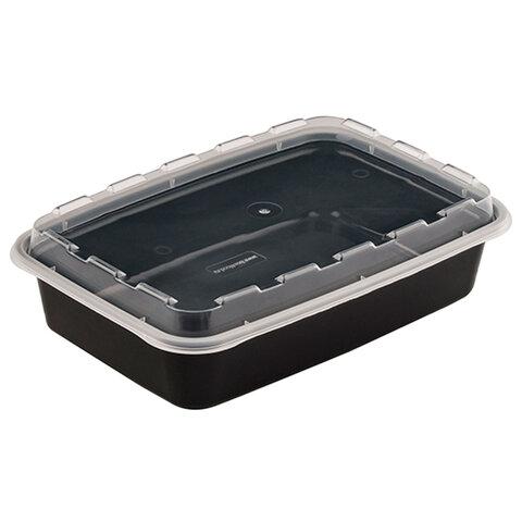 Контейнер одноразовый 830 мл, С КРЫШКОЙ, 207х140 мм, черный/прозрачный, ПП, ВЗЛП, 1261Ч