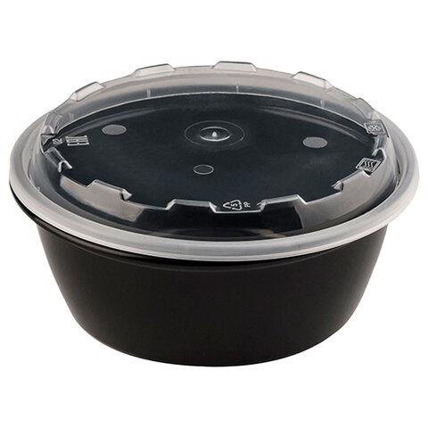 Контейнер одноразовый 950 мл, С КРЫШКОЙ, круглый, диаметр 172 мм, черный/прозрачный, ПП, ВЗЛП, 1265Ч