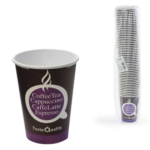 Одноразовые стаканы 300 мл, КОМПЛЕКТ 50 шт., бумажные однослойные, "Taste Quality", холодное/горячее, ФОРМАЦИЯ, HB90-430-0058-50
