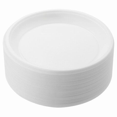 Одноразовые тарелки десертные, КОМПЛЕКТ 100 шт., пластик, d=165 мм, СТАНДАРТ, белые, ПП, холодное/горячее, ЛАЙМА
