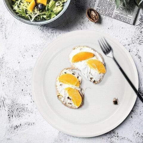 Одноразовые тарелки десертные, КОМПЛЕКТ 100 шт., пластик, d=170 мм, БЮДЖЕТ, белые, ПС, холодное/горячее, ЛАЙМА, 600942